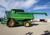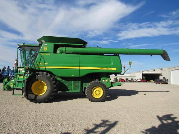 Used 2011 John Deere 9770 STS Corn Combine – PRWD, Single Tires, Big Front Tires, Chopper, and Lateral Tilt Feederhouse.