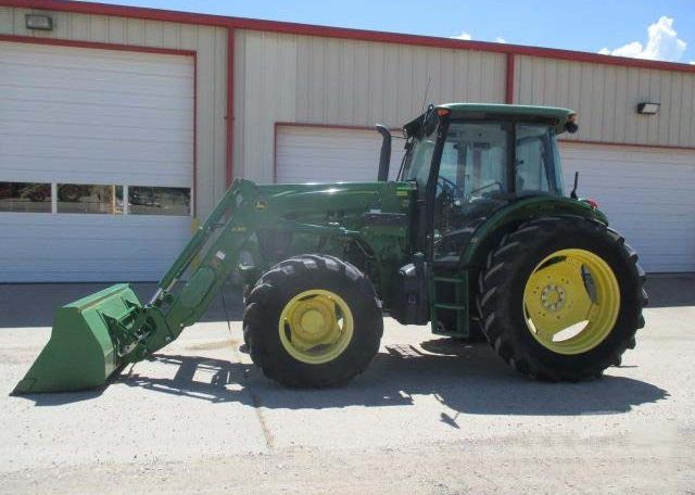 2017 JOHN DEERE 6105E.CAB/AIR/HEAT/RADIO. 4 CYLINDER TURBO DIESEL, 105 HORSEPOWER. POWER REVERSER TRANSMISSION. 4X4. POWER STEERING. QUICK ATTACH JOHN DEERE H310 LOADER/JOYSTICK CONTROL/GLOBAL STYLE QUICK ATTACH BUCKET. 3 POINT AND 540 PTO HOOKUPS. TRIPLE REMOTES. 750 HOURS. CLEAN/RUNS GREAT.