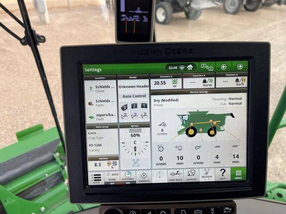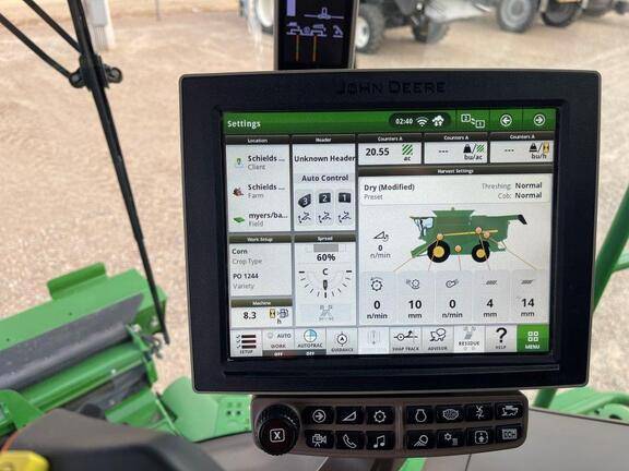 JD S780 STS, CM Cmd Touch 5spd w/ Fore/Aft, Premium Cab, Leather Seat w/ Swivel, Gen4 CommmandCenter w/ 4600, Combine Advisor Pkg, Active Yield, ProDrive Trans w/ HarvestSmart, Small Wire, Gen Purpose Shoe, Custom Cutter Ext Wear Pkg, Ext Wear Grain Handling, 26′ Unload Auger, Power Folding Covers, Chopper, PowerCast Powered Tailboard, Tracks Ready Axle, Camera Rdy, 110v Coolant Heater, 580/85R42 R1W Front Duals, VF620/75R26 Rear, Premium 3.0 Activation,