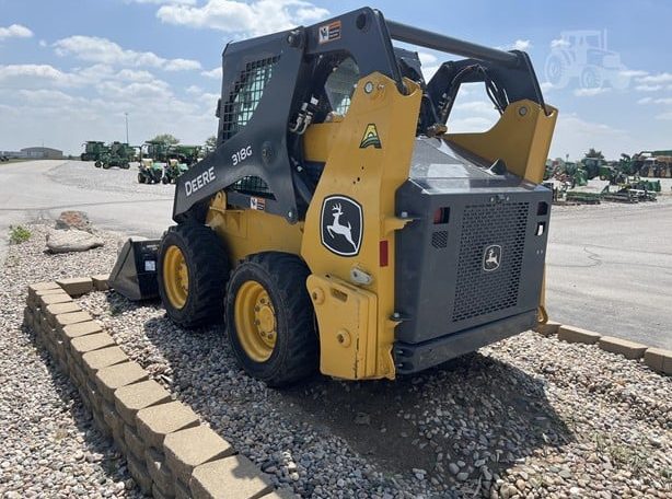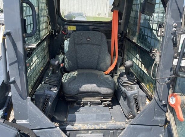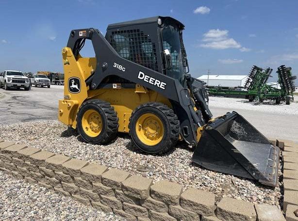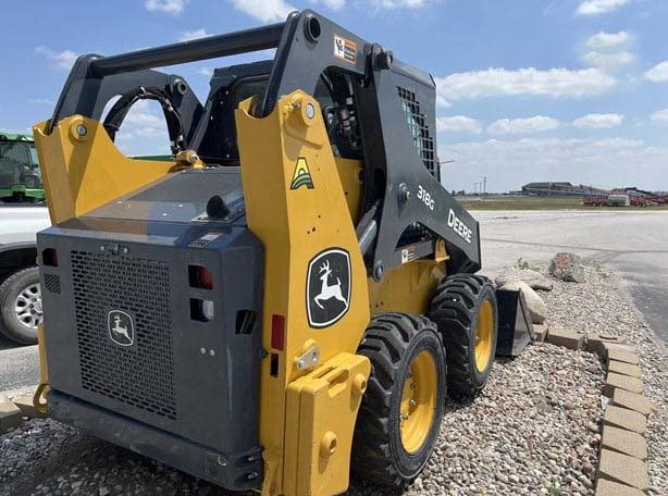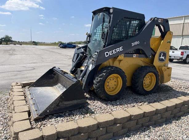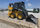 2021 JOHN DEERE 318G, CAB W/HVAC, EH CONTROLS, 2-SPEED, AIR RIDE SEAT, REAR VIEW CAMERA, COLD START PKG, RADIO, KEYLESS SWITCH, REAR WEIGHTS, SELF LEVELING, 66″ CONSTRUCTION BUCKET WITH EDGE.