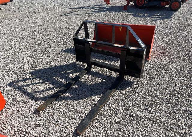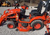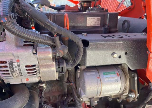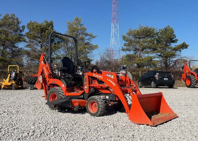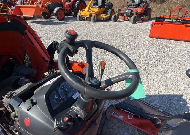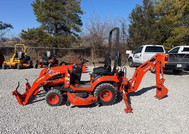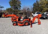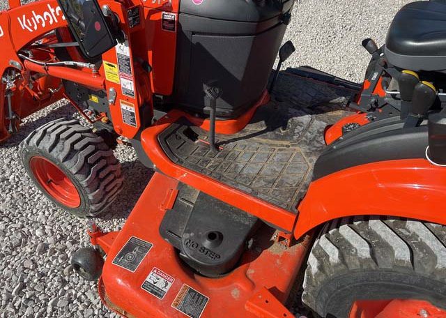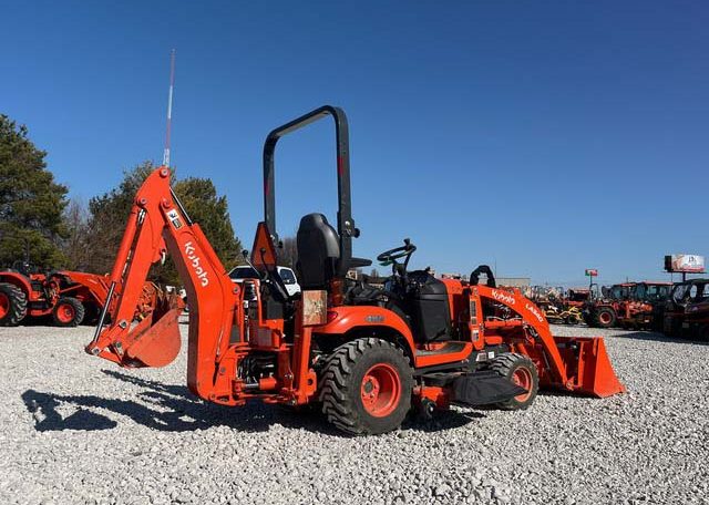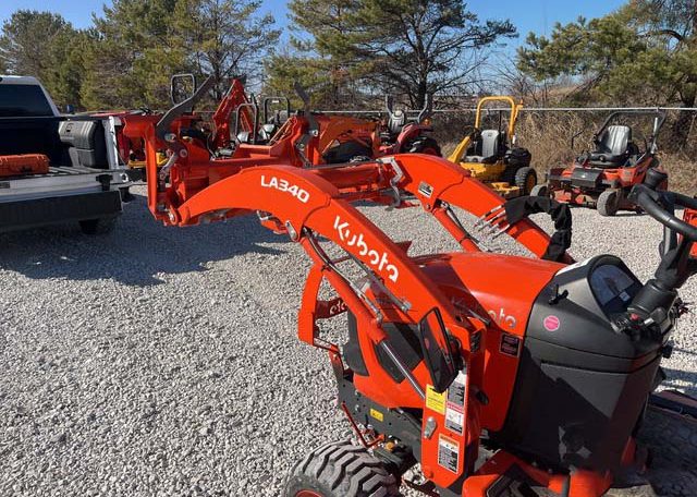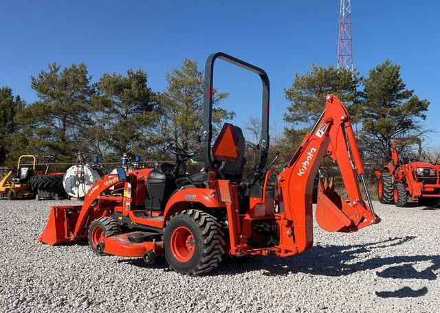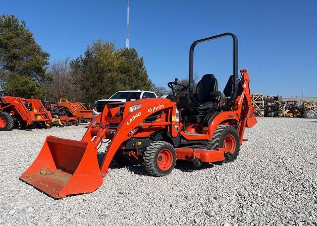 Hydrostatic Drive, 2022 US EPA Label, Kubota LA340 SN: F5914 Loader, Quick Coupler, Kubota Bucket, Land Pride PFL1242 Pallet Forks SN: 2094704, Mid-Mount Remotes, Mid-Mount PTO, Kubota RCK60B23BX Belly Mower SN: C2532, 1 Rear Remotes, 540 PTO, 3-Point Hitch, Land Pride QH05 Quick Hitch SN: 2189528, Kubota BT603 Backhoe Attachment SN: H0468 w/ 12 in Backhoe Bucket, Thumb Bracket, Land Pride GS0560 Grading Scraper SN: 19614378, 18×8.50-10 Front Tires, 26×12.0-12 Rear Tires