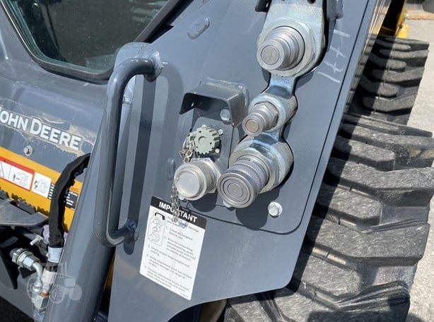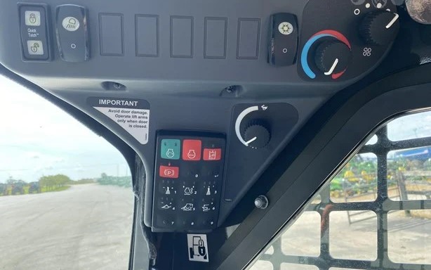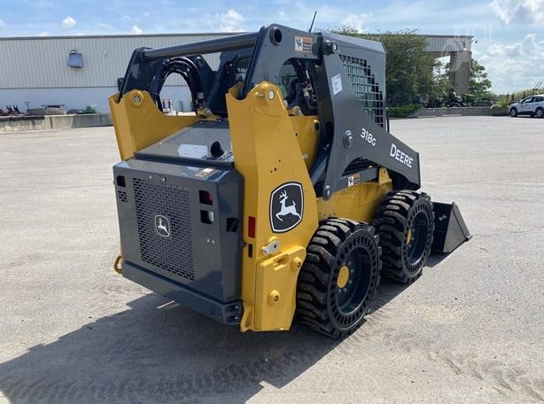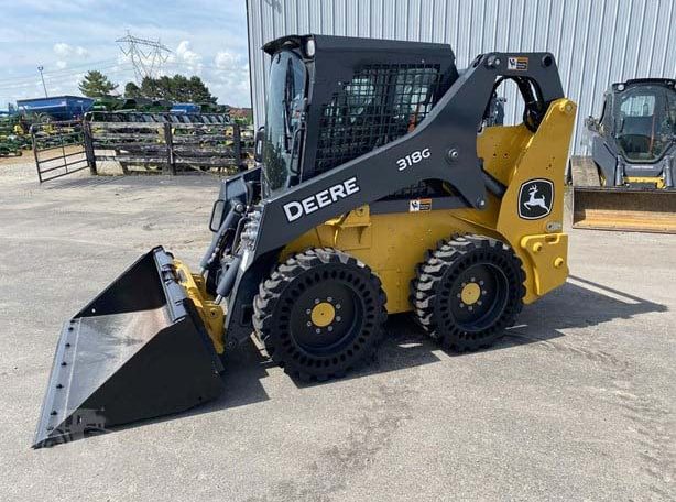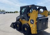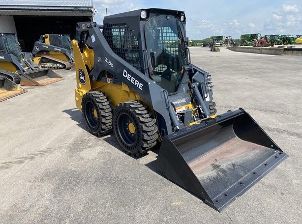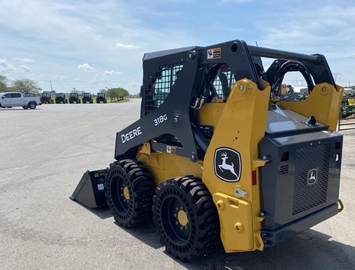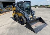 New 318G skid loader. Cab with AC/heat. Air seat and radio. 66″ Construction Bucket with power quick-tach. Solidflex tires